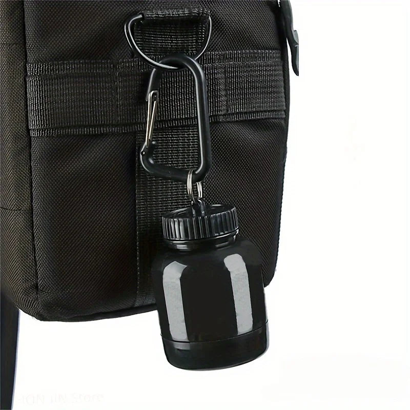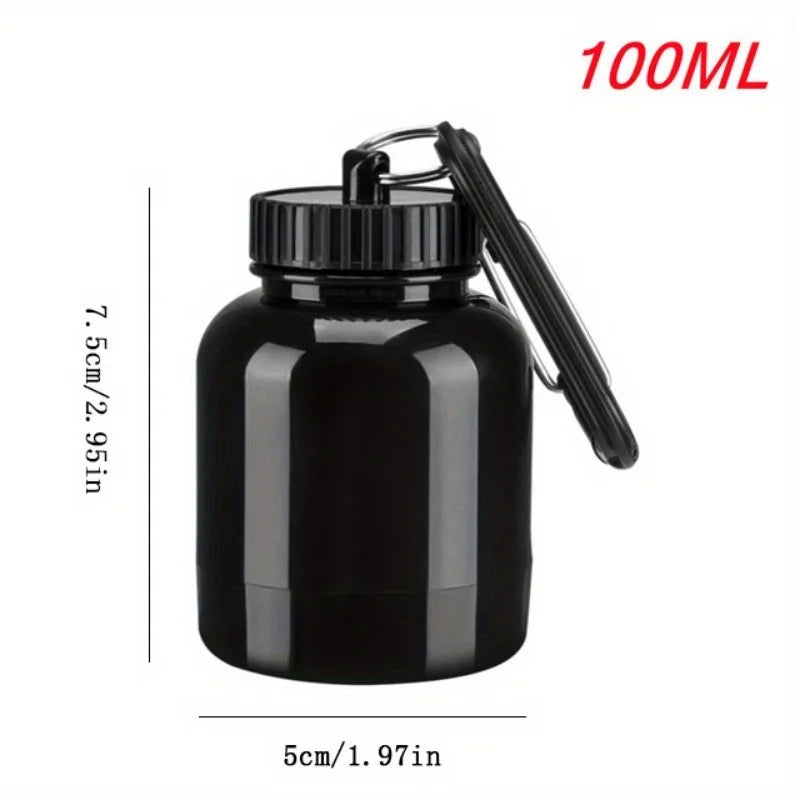 Pot à poudre de protéines avec cartouche de shaker portable et mousqueton (1 pièce), idéal pour les sports de plein air et la musculation.