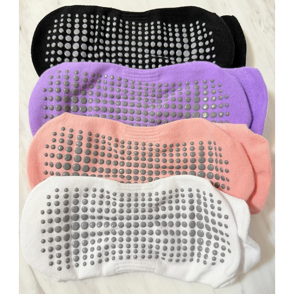 Lot de 4 paires de chaussettes de yoga pour femmes, antidérapantes en silicone, idéales pour le fitness, l'entraînement professionnel, la course à pied et le Pilates. Protection du talon et des oreilles. Chaussettes courtes.