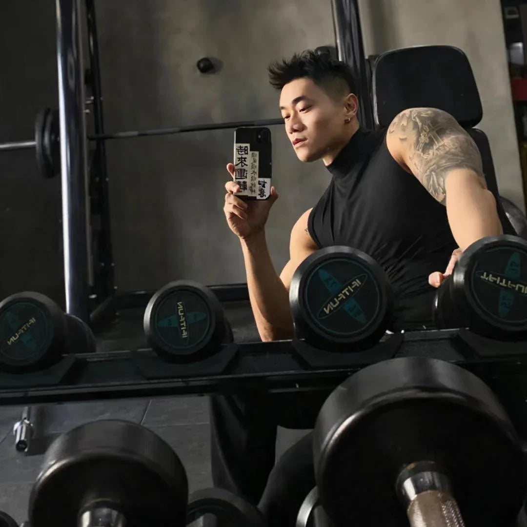 Muscle Men's Fitness Clothes Solid Sports Sleeveless T-shirt High Neck Elastic