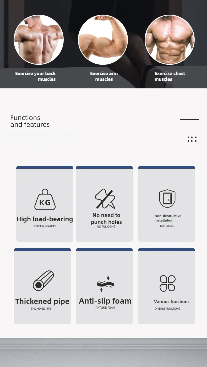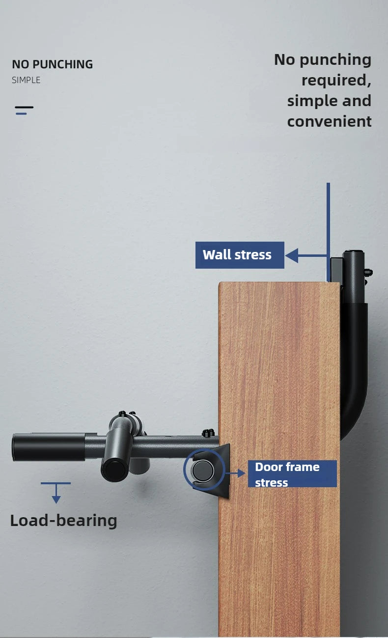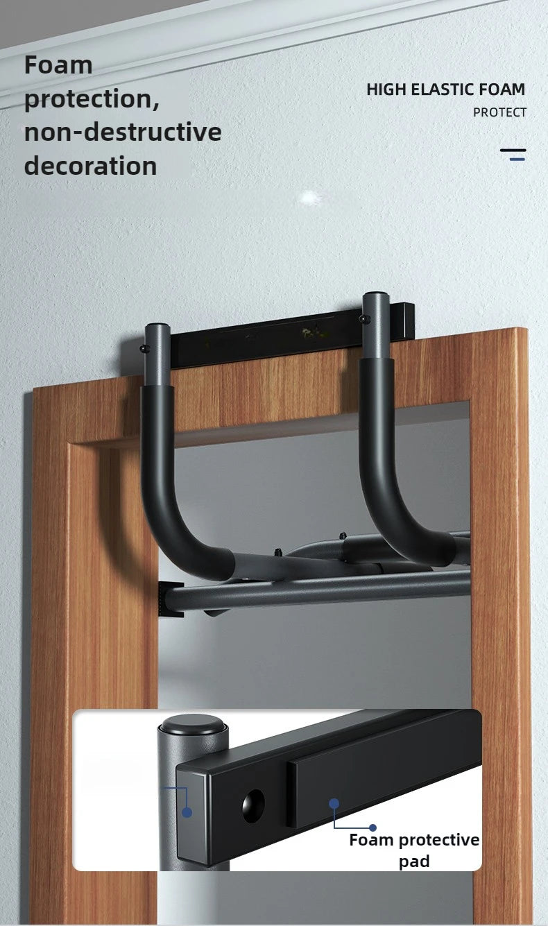 DOOR FRAME PROTECTION - The top of this pull-up bar is equipped with thickened foam to protect the door frame from damage, and the outside and inside of the pullup bar are equipped with foam handles, which can effectively prevent damage to both sides of the door fram.